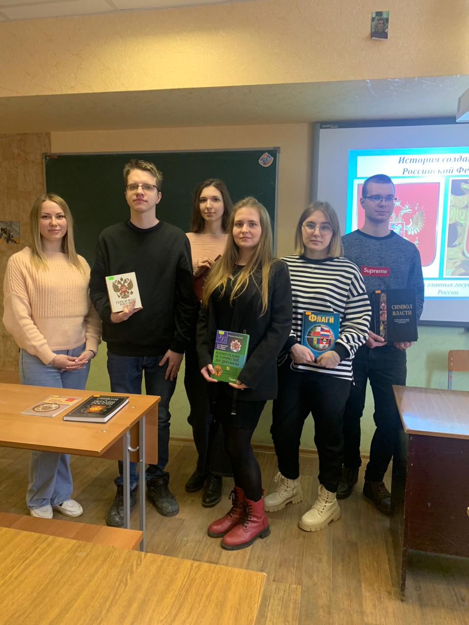 Дудоладова Татьяна Анатольевна ознакомила студентов с основными государственными символами Российской Федерации: гербом, флагом, гимном.