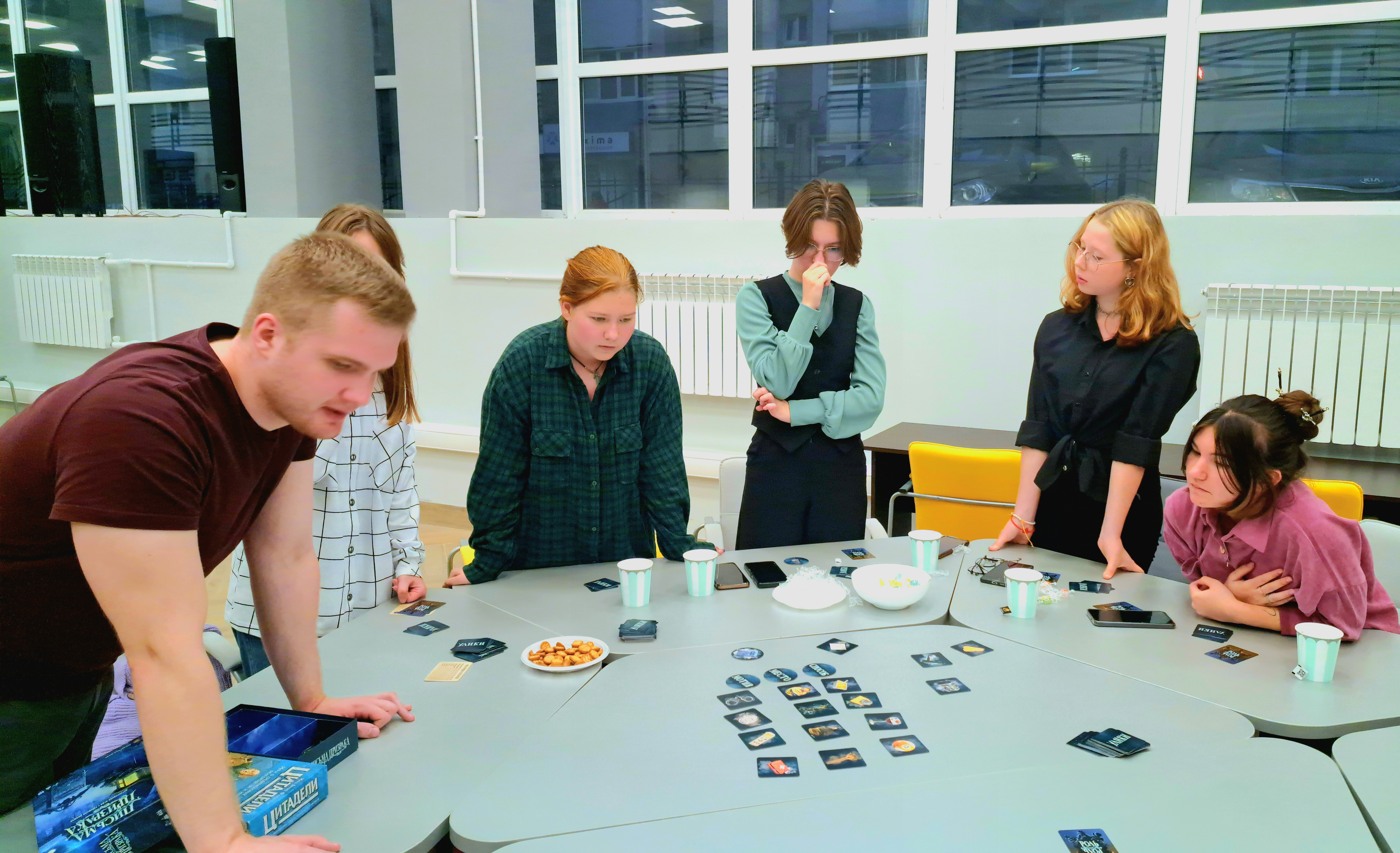 Студенты решали головоломки, расшифровывали термины, расширяли словарный запас, вспоминая однокоренные слова. Чайные паузы и сладости помогали живому общению и созданию дружеской обстановки.