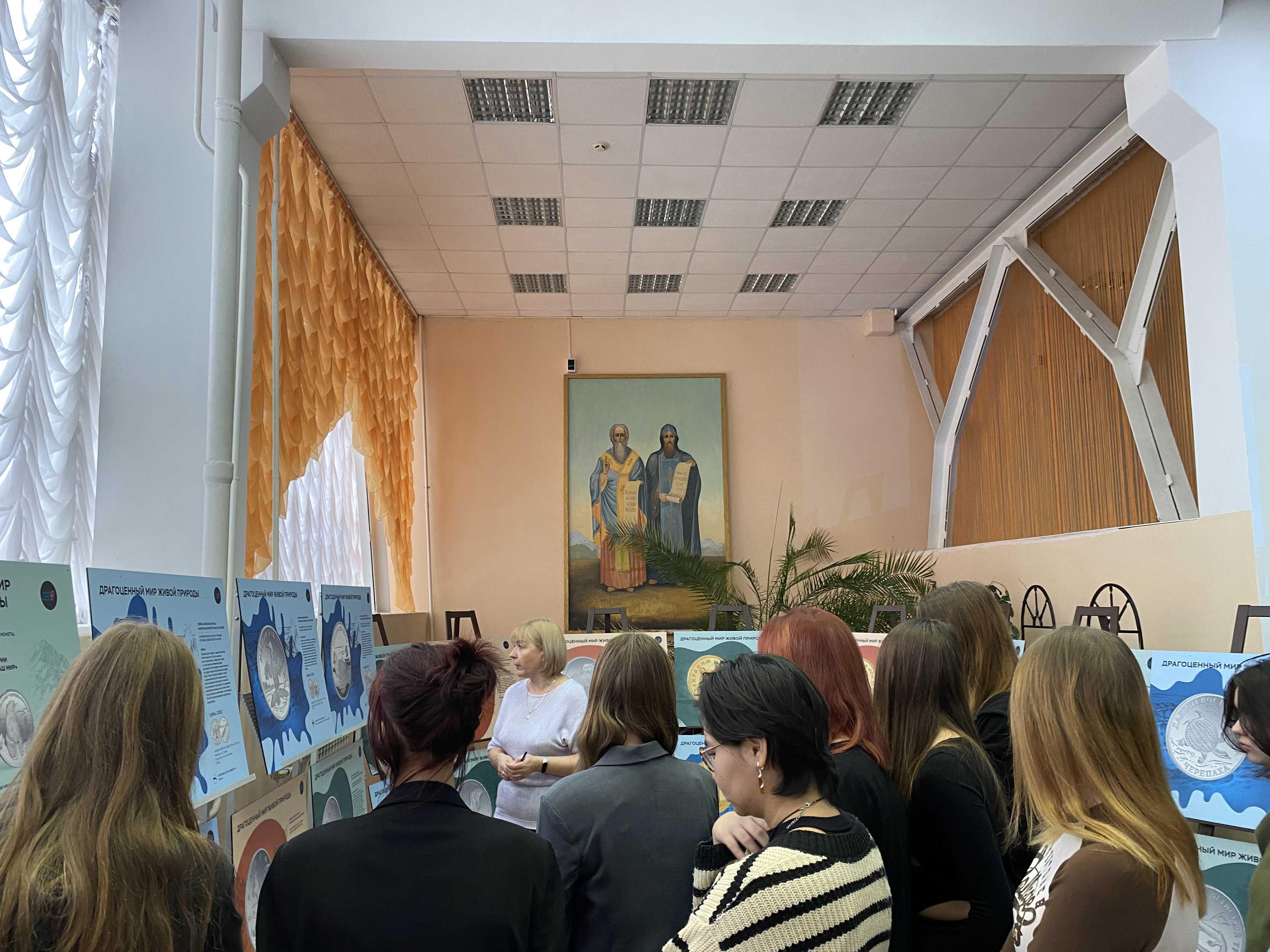 В начале марта для студентов 1-го курса факультета культуры и искусств направления подготовки «Библиотечно-информационная деятельность» заведующей отделом обслуживания Козодаевой Г.С. была проведена экскурсия по выставке «Драгоценный мир живой природы».