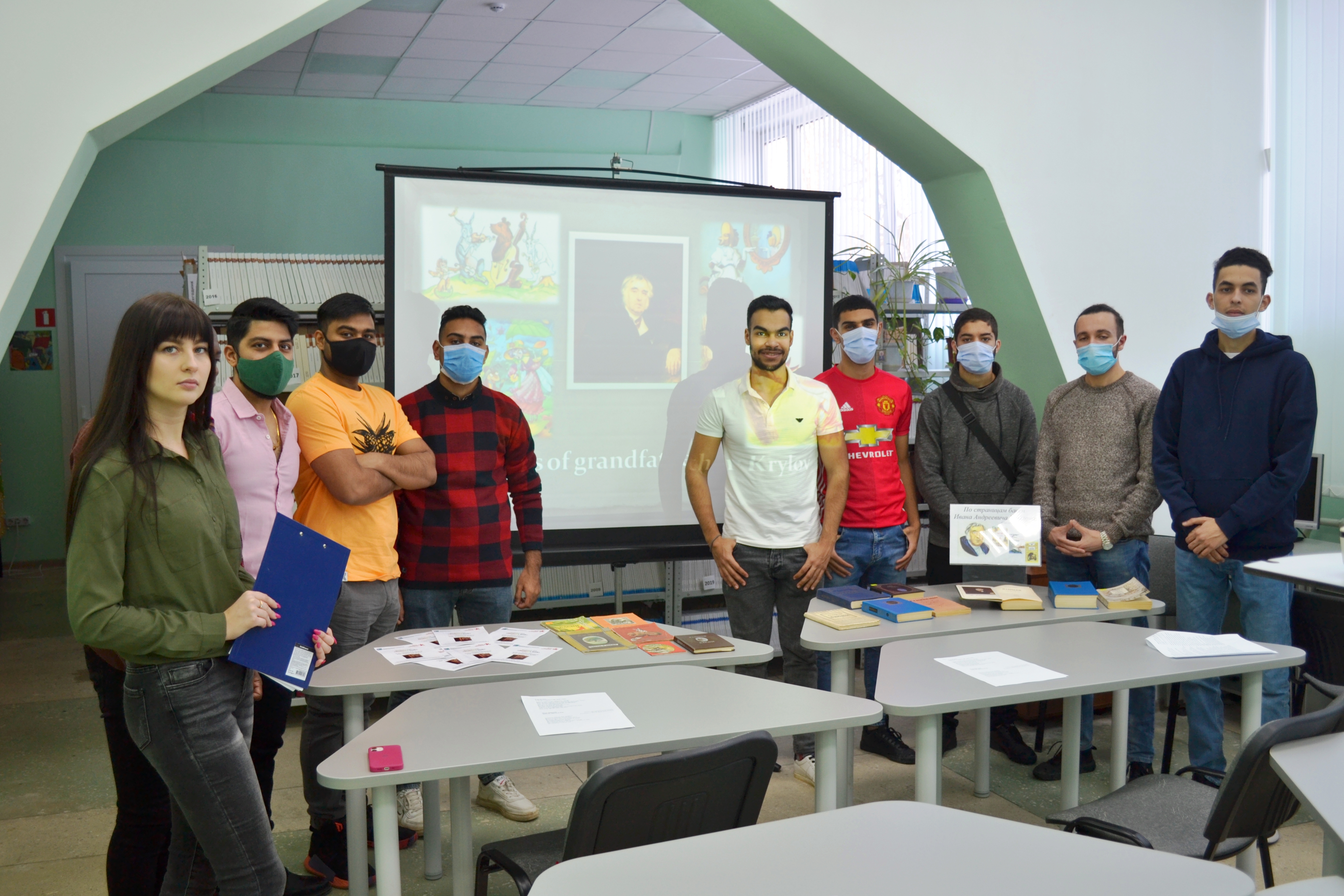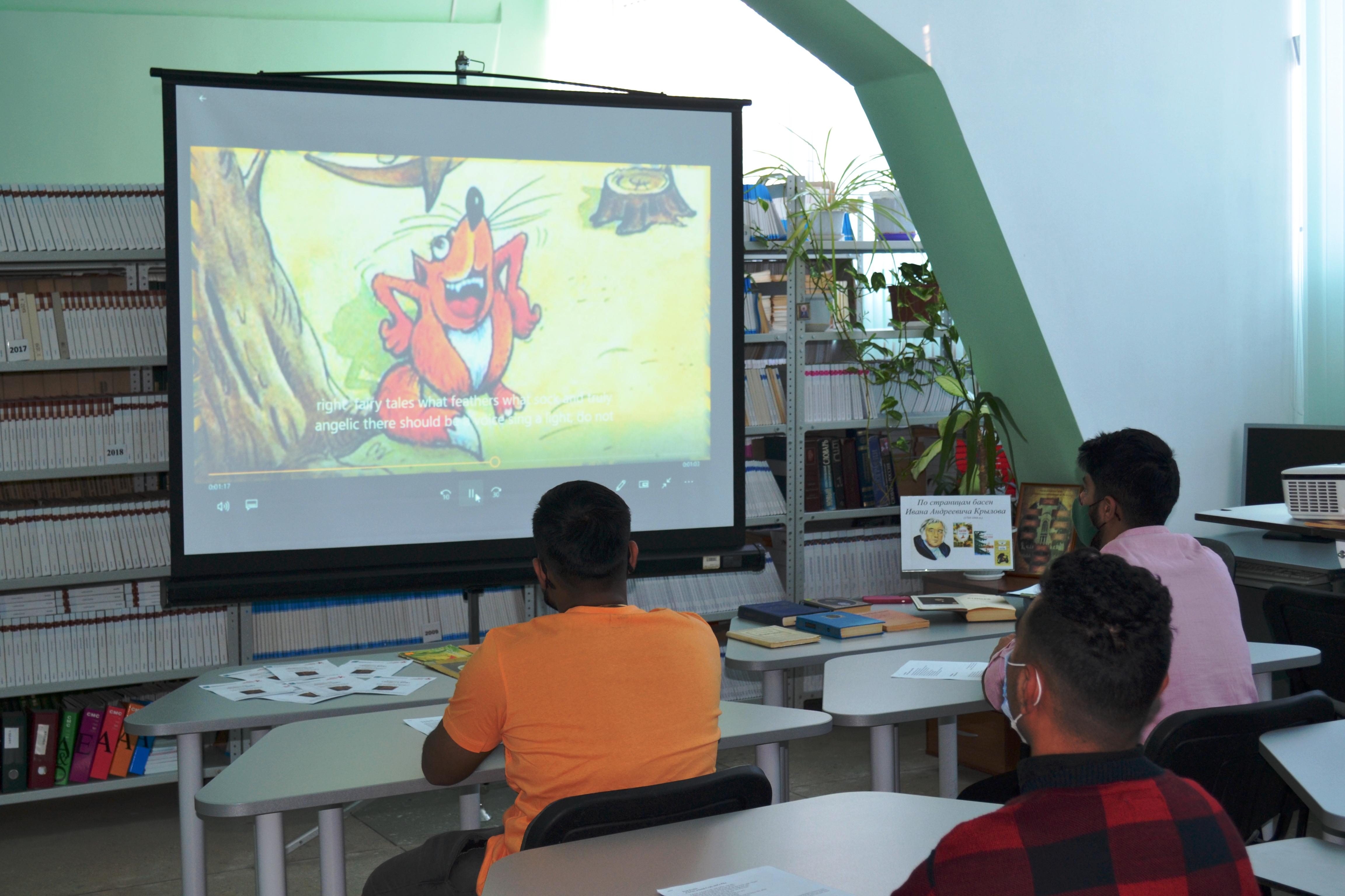 Темой занятия стало знакомство с биографией и творчеством великого русского баснописца Ивана Андреевича Крылова. В ходе мероприятия студентам была продемонстрирована презентация о жизни писателя, на английском языке. Участники по ролям прочитали известные басни Крылова, а также ответили на вопросы викторины «Главный баснописец своей земли».