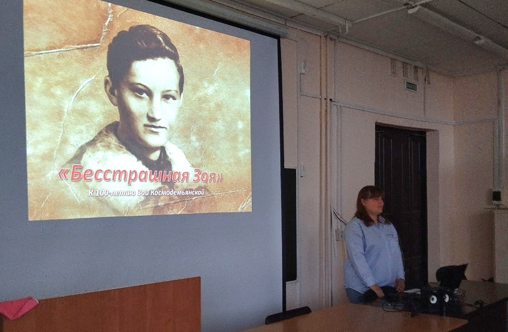 В рамках урока «Разговоры о важном» с учащимися 11 профильных классов был проведен информационный час «Бесстрашная Зоя». Заведующая сектором обслуживания профильных классов Быкасова М.А. рассказала о жизни, трагической гибели, подвиге самоотверженной юной партизанки.