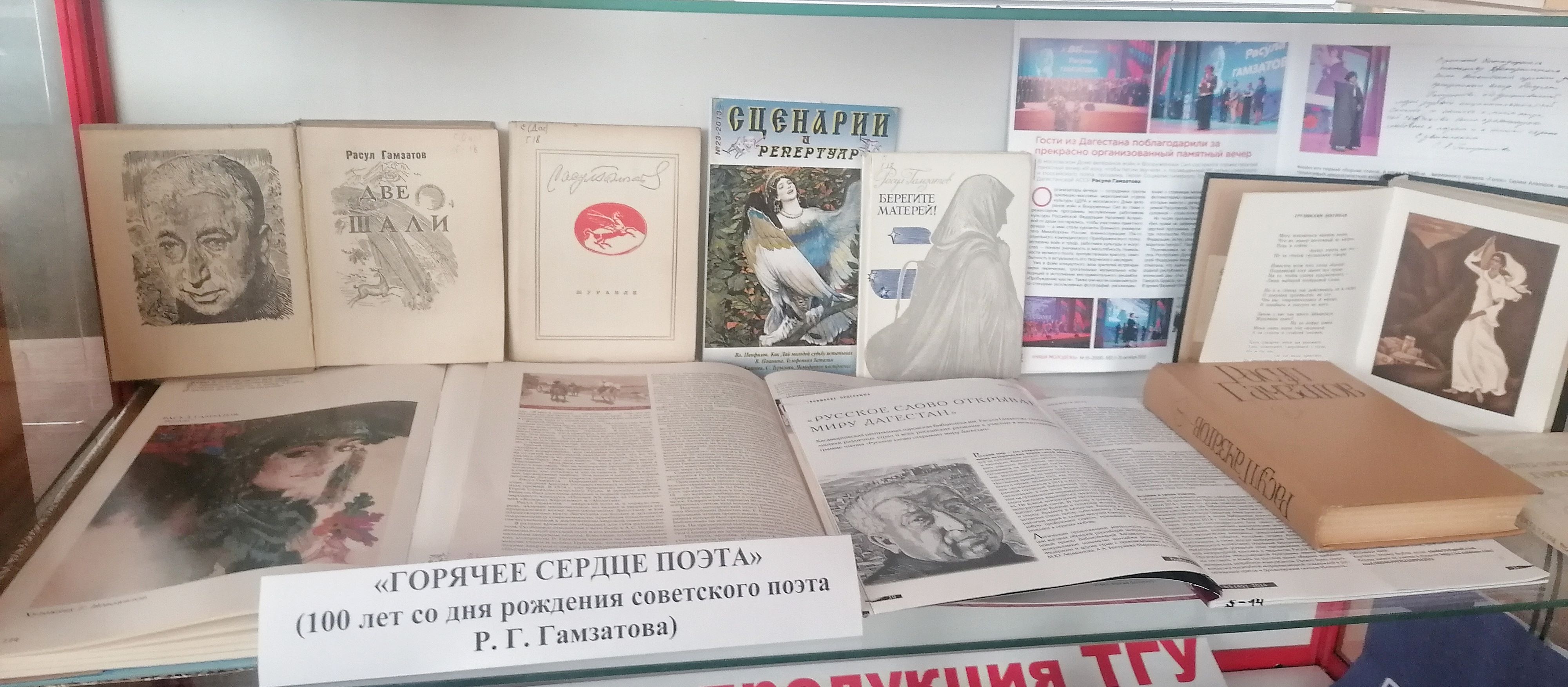 В читальном зале Фундаментальной библиотеки (Советская, 6) организована книжная выставка «Горячее сердце поэта», где представлены как литературные произведения автора, так и статьи из журналов.