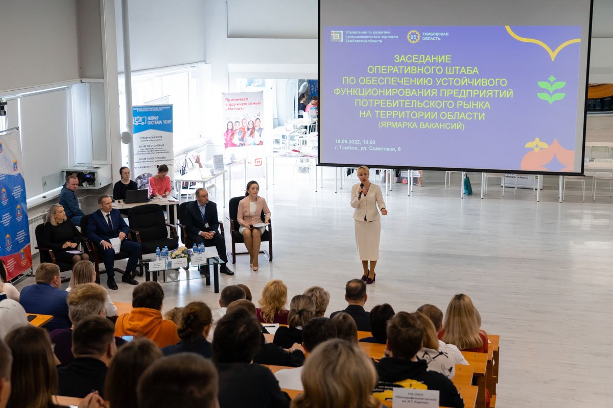 Ярмарка вакансий началась с заседания оперативного штаба по обеспечению устойчивого функционирования предприятий потребительского рынка на территории области. Собравшихся поприветствовала врио заместителя главы администрации Тамбовской области Наталия Макаревич.