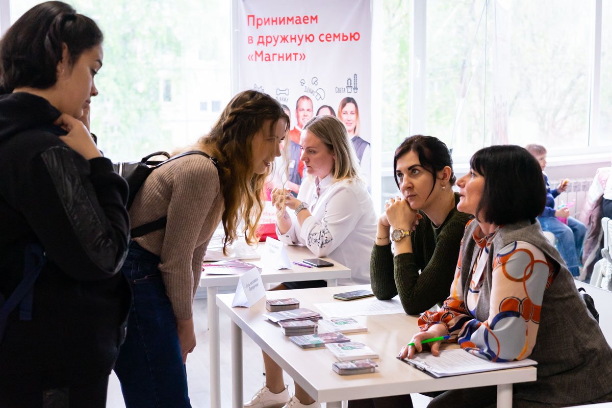 На Ярмарке вакансий выступили представители компаний «АШАН», «Магнит», «Линия», «Пятёрочка», «Бегемот», «МТС», «Новая система услуг». Они познакомили студентов с условиями и перспективами трудоустройства. В консультационных пунктах молодые специалисты смогли обменяться контактами с работодателями и заполнить анкеты.